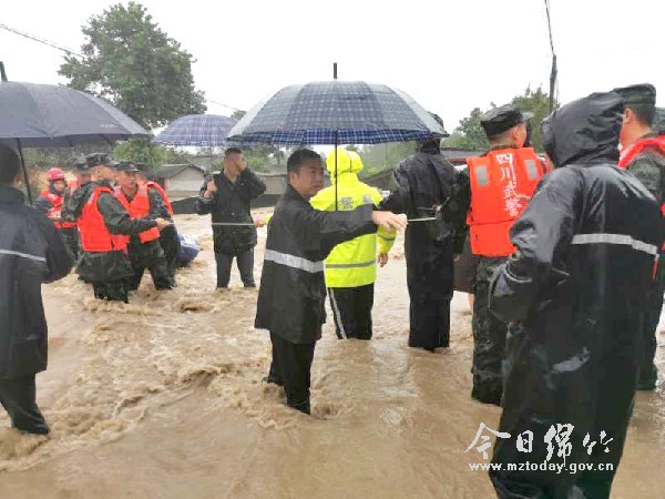 军民齐心 用人墙筑起安全通道转移群众 “大娘,你放轻松不要害怕,我背你出去。”“大家注意安全,顺着牵引绳一个个出来,我们用人墙护着你们。”8月16日凌晨3点,马尾河、射水河河水陡涨,孝德镇洪拱村、齐福社区等地发生严重内涝,一场紧急转移正在进行。 “看到他们,我们就有了‘主心骨’”。村民唐朝碧告诉记者,当天晚上,眼看到洪水漫进院子,她心里一下子就慌了神。后来镇村干部来了,公安民警和武警官兵来了,大家先把老弱病人背出去,再用人墙筑成安全通道,让我们顺着牵引绳平安转移,心里一下子就踏实了! 在齐福社区,77岁的老人唐大珍因老年痴呆全身瘫痪,平常和老伴刘福兴相依为命。为了帮助他们一家安全转移,镇村干部和武警官兵商量后决定用单架将他们抬出来。到达安全地方后,刘福兴不停地说,“感谢党,感谢政府!” “这次降雨导致很多农房进水,积水最深的地方水位已经达到了1米。” 孝德镇宣传委员文静介绍,在36小时的持续降雨过程中,该镇共安全转移受灾群众650余人,目前有224人住在集中安置点。
