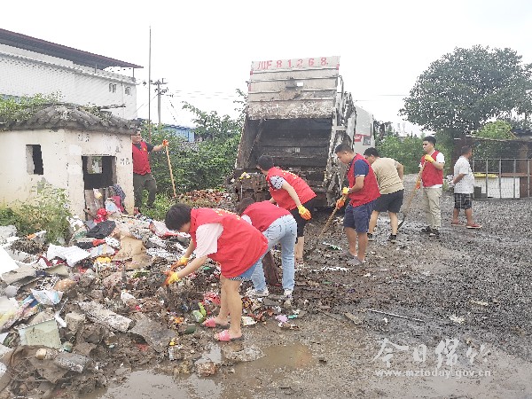 本刊消息 8月18日下午,30余名青年志愿者来到紫岩街道东北社区,帮助受灾群众清运垃圾,打扫卫生,受到群众的赞扬。 在天河村6组,积水已逐渐退去,道路、房屋仍残留着积水留下的痕迹。该村共有96名村民在大水来袭时转移安置,趁着降水暂歇,村民们纷纷赶回家里,收拾被暴雨肆虐的家。而紫岩街道办的机关工作人员及市住建局、综合执法局的30余名青年志愿者也及时前来帮忙,和村民一起打扫卫生、收拾庭院,助其早日重返家园。 “1、2、3”,伴随着嘹亮的号子,身穿红马甲的志愿者们齐心协力,把村民家中被积水浸泡损坏的家具抬了出来,放到垃圾清碎机上打碎运走。随后,他们又将公路上被洪水冲来的淤泥、树枝等垃圾清理干净。“通过我们的打扫,让他们的家园重回美丽,再苦再累也值得。”志愿者们个个铆足了劲,清理淤泥、运走垃圾、冲刷地面,帮助完这家又赶去帮助另一家…… “我腿走路不方便,他们帮我把损坏的家具一件件搬出来,还把屋子都清理干净。要不是他们,我一个人不知道要搞到哪一天呢!”家住天河村6组的李奶奶笑着说道。