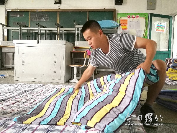 和义务巡逻队一起巡逻守夜、为观鱼学校集中安置点群众整理床铺、和镇村干部一起为群众发放饭菜......自汛情发生以来,在观鱼学校集中安置点,时常可见一名身穿橄榄绿、皮肤黝黑的年青人穿梭在安置群众中间,和镇村组干部一起为转移群众提供暖心服务,帮助乡亲共渡难关。 他就是李超,现年25岁,是一名现役军人。此次回乡探亲,恰逢洪水灾情,他匆匆给父母丢下一句话“汛情紧急,我必须到防汛前线去”的简短话语后便主动请缨参与到转移受灾群众、为集中安置点群众做好志愿服务等工作中。 8月15日,暴雨如注,洪水已齐膝盖。为尽快帮助老百姓转移,心急如焚的李超来不及穿上父母拿出来的雨靴,匆匆套上雨衣便出了门。“杨爷爷,快开门,我背你出去。”在脚下激流的阻挡中,李超艰难地走到红豆村9组杨顺清的家中,冒着滂沱大雨,踩着滚滚激流,在水里摸黑前行,艰难地把老人安全转移到观鱼学校集中安置点。 帮助群众转移后,李超又急忙赶往观鱼学校集中安置点,加入到临时党支部后勤保障组,成为了一名党员志愿者。搬运物资、发放就餐伙食、打扫居住地卫生、给群众做思想工作......他用责任和付出,践行着一名军人的担当和使命。 “消毒工作一定要仔细,地面、门窗、桌椅等凡是能够接触到的地方都要一一消杀。”8月20日中午,匆匆刨了几口饭的李超穿上工作服,背起消毒设施,手持喷枪对食堂、教室等地挨个儿进行消毒。尽管衣服湿了一遍又一遍,他却依旧埋头苦干,只为给大家提供一个良好的卫生环境。“小伙子不错,本来应该休假的,却一直坚持给我们送饭,还整理床铺,硬是个很合格的好兵。”集中安置点老百姓在得知李强现役军人的身份后,纷纷竖起大拇指称赞。 “哪里有危险,哪里就是战场,这是军人的天职。”李超说,只要父老乡亲需要,就会毫不犹豫站出来!