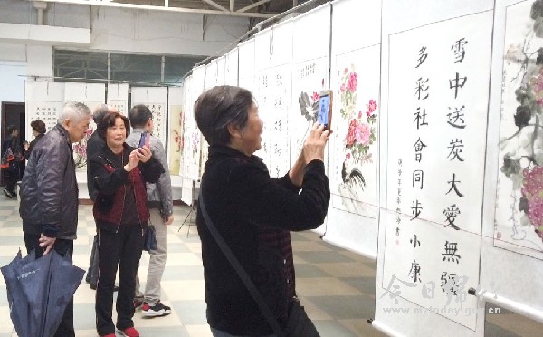 本刊消息 9月28日上午,由市委组织部、市委老干局、老年诗书画协会主办的“祝福祖国”离退休干部书画作品展在市委老干局举行,丰富多彩的书画作品吸引了众多市民前去观展。 当天上午9点,记者在书画展现场看到,160余幅精美作品分列在展厅墙面上,展厅内飘着淡淡的墨香,不少书画爱好者在作品前流连忘返,或凝神品味,或低头交流,或拿出手机拍下喜欢的作品。细细观看,这些书画作品题材丰富,字迹或刚劲有力,或清秀飘逸,或浑厚大气。作品中的苍松翠柏、荷塘秋韵、奇峰怪石,无不惹人沉醉。还有部分书画爱好者不仅以自己擅长的形式创作书画作品,而且还结合生活加以创新,让书画作品赋予了新的寓意。参展作品主题鲜明,内容丰富,以传承中国优秀传统文化的书法书画为载体,反映伟大祖国的沧桑巨变,也展现家乡的发展新貌。在内容表现上,作品突出主旋律,传播正能量,弘扬了中国的传统文化。在艺术形式上,书法作品草、隶、篆、行书体齐备,笔精墨妙。国画作品山水、花鸟百花齐放,万紫千红,充分表达了广大老干部书画爱好者对党和国家的无限热爱。“此次书画展我有4幅作品入展,内容涵盖脱贫攻坚、祝福祖国等内容,希望我的作品让参观者的心灵得到净化。”书画展作者代表尹荣新说道。 据了解,本次书画展时间从即日起至30日结束。接下来,书画展还将进学校、进企业展出,进一步弘扬传统文化和社会主义核心价值观。