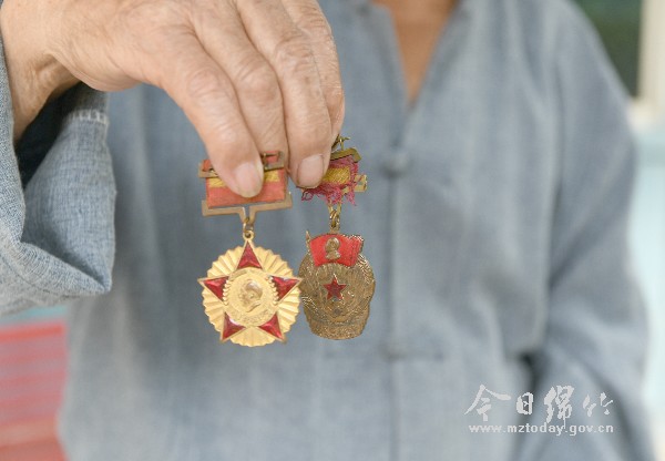 布袋、丝帕、毛巾、茶盅、军大衣等物品,这些70年前在朝鲜战场上用过的东西和抗美援朝证件证书,至今还被一位老人保存着,他就是92岁的复员退伍老战士皮明元。日前,他拿出这些珍藏的物品,向我们讲述他参军的经历时,让我们对抗美援朝那段历史有了更深入的了解。 战场上用过的物品,见证一段峥嵘岁月 今年国庆后,当我们来到绵竹市汉旺镇兴隆集镇社区皮明元家采访时,这位头发已花白、牙齿已稀疏,精神面貌尚好的老人热情地把我们引进他家。 推开两扇大铁门,待记者落座之后,他连忙从寝室取出一个陈旧的大布袋。这个布袋非常陈旧,但上面绣的“抗美援朝志愿军,民族精神”等字样却清晰可见。 皮明元回忆道,1951年,他从绵竹参军出发前,家住绵竹城关14分会2小组居民张游光赠送给他一个大布袋,他一直保存在身边。1951年,他从当时的兴隆乡报名参加中国人民志愿军,大家在拱星参加体检后,从绵竹走路到广汉。广汉老乡举行了热烈的欢送仪式,家里的人也赶到广汉送别。大家又是洒纸花,又是扭秧歌敲锣鼓,场面十分闹热,让人感动。后来,他到了东北地区,在沈阳的苏家村学习40天后便奔赴朝鲜。在抗美援朝时,他是铁道兵,干的是通信员和勤务兵的事情。 “保存好这些老物件,就是为了留住那段记忆。”皮明元缓慢地打开布袋,一边细细抚摸,一边向我们展示那些老物件。记者看到,一条白毛巾打着两个补丁,但毛巾两头的红字“中朝人民军队并肩前进保卫世界持久和平,中国人民赴朝慰问团赠”的字样十分清晰。另一张一尺见方的丝巾上印着“抗美援朝,保家卫国”等字样和图案。在一大一小的两个瓷盅的侧壁上,写着“赠给最可爱的人,中国人民赴朝慰问团”。在两枚抗美援朝纪念章的背面,写着“中国人民政治协商会议全国委员会,1951”等字样,布袋内还有一张证书,那是皮明元参加抗美援朝战争的革命军人证明书。这个由当时的中国人民志愿军政治部在1951年7月颁发的军人证明书写道:“中国人民志愿者特一师独立五团一营……” 战地日记记载当时训练场景 在朝鲜当铁道兵时,皮明元负伤,他的右腰软肋处被炮弹弹片击伤。当时用毛巾包扎伤口,以至于现在看到的毛巾上还有残留着血迹。负伤后,他便在通化医院休养。 皮明元还向我们展示了不足一尺见方的当时“中华人民共和国东北地区地图”和“全国形势图”,就连当时部队急救布片,他都珍藏了下来。记者看到,军绿色的布片已经锈迹斑斑,放有三寸见方的布片中还留有几条战场急救救护知识。在一个小小的红皮笔记本内,记者看到皮明元这样的经历:“铁道兵团51.3-52.9;通化医院休养52.9-53.2;西南军区训练二团九连53.2-53.4”。 在皮明元保存的一本在朝鲜战场的战地日记中,记者发现一位战友写给皮明元的留言:“亲爱的明元同志,我们的同乡人,因革命工作相遇,互相有革命的深厚感情,在不久的将来,我们就要分别了,但是希望在现在的基础继续前进……” 皮明元还在日记本上记载了《人民解放军进行曲》的歌词内容。“向前、向前、向前,我们的队伍向太阳,脚踏着祖国的大地,背负着民簇的希望,我们的子弟兵,我们是人民的武装部队,支援前线增加生产……”老人轻轻的哼着。 战场上抢修铁路,13位战友壮烈牺牲 皮明元印象最深的要数在朝鲜修铁路的那段时间。 “那天修铁路,美国的飞机飞过来丢炸弹,我的腰受伤了”。“与朝鲜人民并肩作战,修铁路、修公路,当时路还未修好,就又被飞机炸了”。 他回忆道,一个星期天的中午,他们同行的40多位战士领到面粉后一起包饺子吃,就看到两架美国飞机向他们飞来,飞机丢下的炸弹炸毁了他们修建的铁路。他们40多人赶忙去抢修,第二架飞机又飞过来了,当时一下子炸死了他们13位战友。当时2颗炸弹就可以炸出现在一个泉堰那么大的土坑,“太危险了,太可怕了。面对敌人的狂轰乱炸,朝鲜人民和我们的士兵赶紧躲进山洞里。”皮明元说。 孙子皮粤牢记爷爷嘱托 从军保家卫国 2008年“5·12”特大地震后,他的新家重新建在与兴隆卫生院相邻的位置,与小儿子皮开成在一起居住。 由于爷爷的从军经历,家庭教育的耳濡目染,今年国庆前,其孙子、在校大学生皮粤参军进入北京的某部队,重走爷爷的保家卫国之路。 谈起今天的和平和幸福生活,皮明元感慨地说:“我至今保存着这些遗物,舍不得丢弃,因为这是历史的见证,传承给后人,就是要牢记那段历史,教育下一代,让他们珍惜今天来之不易的幸福生活。”