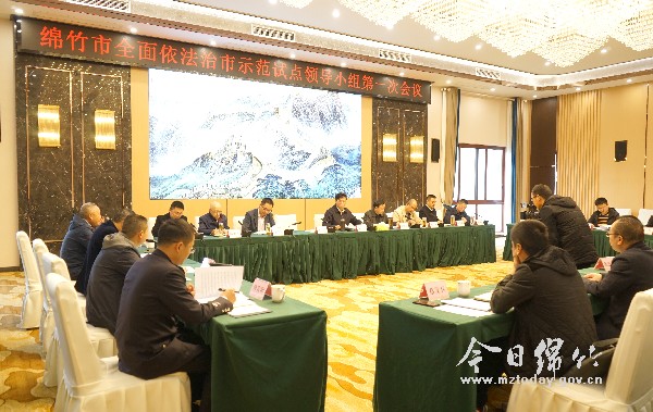 本刊消息 11月4日下午,市委书记、市全面依法治市示范试点领导小组组长李栋主持召开绵竹市全面依法治市示范试点领导小组第一次会议。市委副书记、常务副市长、绵竹高新区党工委书记李麒麟,市委常委、总工会主席黄勇,市委常委、宣传部部长马军,市委常委、纪委书记、市监委主任陈阳波,市委常委、市政协党组副书记、统战部部长曾学武,市人大常委会副主任廖大平,副市长、公安局局长黄和川,市人民法院院长杨三荣参加会议。 记者从会上获悉,为加快建设更高水平法治四川,省委全面依法治省委员会于日前印发了《关于开展全面依法治县示范试点暨示范推动解决法治建设八个具体问题有关工作的通知》,决定在14个县(市、区)开展全面依法治县示范试点,着力强化全面依法治省薄弱环节,创新探索基层法治建设有效路径,推出一批务实管用、可复制可借鉴的法治建设经验和模式,绵竹位列其中。 会议强调,绵竹市被选定为全省14个全面依法治县示范试点地区之一,既是充分肯定绵竹在全面依法治市工作中取得的成绩,也对绵竹全面依法治市工作提出了新的要求。全市上下要提高政治站位,强化示范试点的使命担当,找准工作的切入点和突破口,以法治思维和法治方式,创造性开展示范试点工作,推动形成全面依法治市的绵竹模式。 会议要求,要以开展示范试点工作为契机,突出重点,找准关键,着力破解法治建设中的“难点”“堵点”“矛盾点”,以点带面提升绵竹法治建设整体水平,不断增强群众法治获得感和幸福感。要以“五大示范行动”为抓手,明确推进示范试点工作的指导思想、时间节点、目标任务,着力将法治精神、法治要求贯穿到工作的各方面、各领域、各环节,确保绵竹全面依法治市示范试点工作开好局、起好步。要狠抓工作落实,营造法治氛围,在工作推进过程中要注重系统性总结和提炼创新举措和有效办法,努力推动形成可复制、可推广、可借鉴的绵竹经验,向省委交出一份满意答卷。 会议还审议了《绵竹市全面依法治市示范试点工作实施方案》和《绵竹市全面依法治市示范试点动员部署会会议方案》。