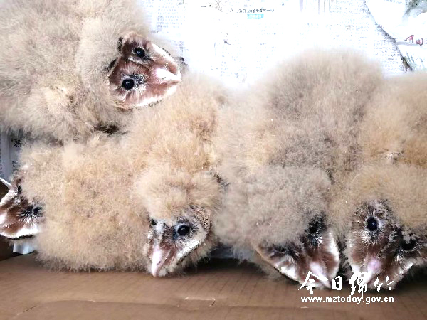 本刊消息 11月25日下午,市自然资源局工作人员赶到德阳博爱陆生野生动物救护中心,将5只毛绒绒的猴面鹰雏鸟委托给专业野生动物救护工作人员照顾。 “5只雏鸟,毛绒绒的,很有精神。”玉泉派出所民警赖勤东回忆,24日傍晚,一位村民在放羊途中路过石亭江河畔时,听到了雏鸟叫声。寻声过去,发现5只毛绒绒的小鸟,但是寻找许久都未在周围找到小家伙们的“爸爸妈妈”,他只得小心翼翼将雏鸟带回家中,并立即与派出所联系,他形容“它们的身体像小羊羔一样毛绒绒圆滚滚的,只是脸长得特别怪异,像猴子,又有坚硬的喙。” 民警立即赶到村民家中,看到5只小鸟精神劲十足,见到民警,挤在一起叽叽喳喳叫个不停。民警用手机搜索后确定面前5只雏鸟是猴面鹰,属国家二级保护野生动物,于是将其带回派出所,并与市自然资源局取得联系。赖勤东说,5只雏鸟应该没有受伤,见到民警特地买来的肉和火腿肠,立即就大快朵颐,吃饱喝足,才慢慢入眠。 25日下午,市自然资源局工作人员将5只雏鸟送到了德阳博爱陆生野生动物救护中心。“离开了鸟妈妈,小鸟不易存活,必须由专业人士给予救助。”工作人员介绍,猴面鹰(学名:Tyto)是草鸮科草鸮属动物,是国家二级保护野生动物,被列入《世界自然保护联盟》濒危物种红色名录。猴面鹰主要栖息于开阔的原野、低山、丘陵以及农田、城镇和村屯附近森林中,只在夜晚活动,白天处于睡眠状态。属中型猛禽,面盘扁平,呈心脏形,白色或灰棕色,四周有暗栗色边缘,似猴脸,长满绒毛,一双深圆大眼,嘴黄褐色,嘴喙不尖,鹰身鹰爪。 (图由自然资源局提供)
