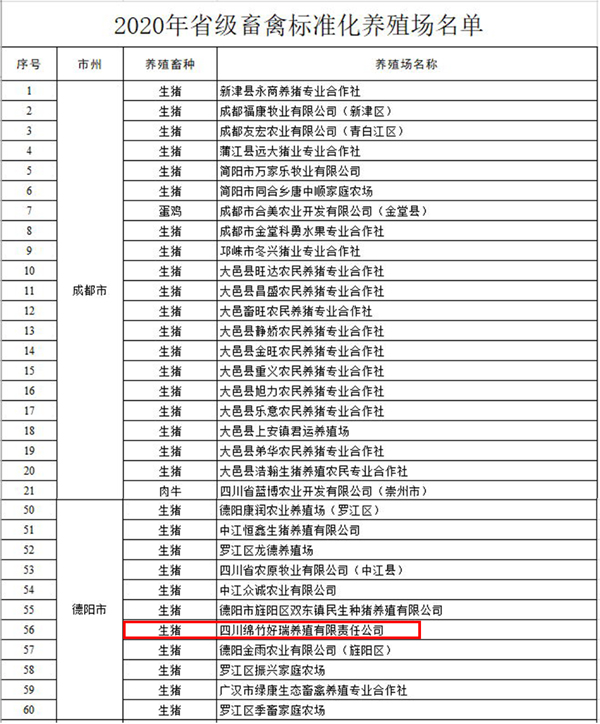 2020年省级畜禽标准化养殖场名单公示出炉 绵竹1家养殖场上榜