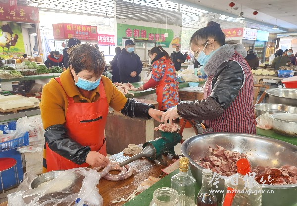 随着冬至临近,我市迎来“灌香肠”、晾腊味的旺季。记者在多家农贸市场看到,猪肉供应量充足,不少肉铺、加工摊位纷纷打出了“灌装香肠”招牌,室外的不锈钢架子上也挂起了一串串香肠、腊肉,成为冬季街头的一道独特风景。 12月11日上午9点,记者在城南农贸市场看到,十余家猪肉摊前都围满了前来购买猪肉的市民,五花肉、前腿肉、后腿肉应有尽有,供应充足。市民田甜在一家肉摊前挑选了17斤猪肉,然后来到市场里的一个灌装香肠加工摊点上准备灌装香肠。在这家加工摊点,不少市民早已在排队等待,四位工作人员有序地帮顾客洗肉、切肉、拌调料、称重、灌装……忙碌而有序。“自己买肉,又看着他们加工,虽然麻烦点,但这样吃着放心。我们家里每年都要灌上十几斤,根据老人和年轻人的口味灌装川味和广味两种,家里有了腊味,感觉年味也浓了!”田甜如是说。 摊点负责人傅元芳告诉记者,今年猪肉价格比去年便宜一些,与去年同期相比,今年灌装香肠的市民也比去年多了不少,她的摊点从10月下旬开始就一直很忙,平均每天要加工500斤左右,加工费是4元/斤。“一般香肠晾晒到八成干的时候就应该收进冰箱储藏,如果晾晒时间过长,会变硬变干,口感就不好了。另外,晾好的香肠千万不能淋雨,否则香肠会变酸。”傅元芳一边忙一边说。 除了自己灌装以外,购买已经晾晒好的香肠、腊肉也成为一些市民的选择。在位于紫岩路的一家腊货店铺里,挂满了晾晒好的香肠和各种腊味制品,市民付莉选购了一些川味香肠准备带回家。她告诉记者,因为自己平时工作较忙,没有时间去灌装香肠,自己每年都会来这里购买一些,图个方便。店主严和莉告诉记者,店铺里晾晒好的香肠为58元/斤,腊肉为48元/斤,最近这段时间只有一些零散的顾客陆续前来购买,购买的高峰期预计在2021年1月左右,那也将是他们一年最忙碌的时候。 |