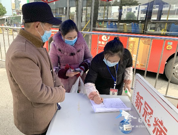 只见一辆辆从外地回来的公共汽车慢慢驶入进站口,随后缓慢停了下来。“大家请下车,配合一下工作。“车站的防疫工作人员对下车的司机和乘客逐一进行体温检测、实名身份信息登记后,车辆才能进站,乘客才能顺利出站。“自从今年疫情发生以来,特别是最近郫都区发现新冠肺炎疫情,我们城市交通服务中心根据绵竹市应对新型冠状病毒感染肺炎疫情应急指挥部要求,联合市公安局、卫健局、交通局三个部门,设立了防疫卡点,对所有乘坐公共交通返绵旅客进行身份验证、体温检测、身份信息登记工作,同时在售票大厅内设立了进站乘车旅客防疫站点。” 据城市交通服务中心站长刘帮贵介绍,城市交通服务中心对全体员工和司乘人员进行防疫知识培训,及时做好车站内外、车辆的消杀工作,并且在车站醒目位置张贴防疫宣传海报等。