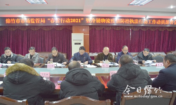 本刊消息 12月22日,市市场监管局召开了“春雷行动2021”暨冷链物流疫情防控执法行动工作动员部署会。 记者从会上获悉,我市将从2020年12月15日至2021年3月31日,在全市范围内开展主题为“防疫治乱保安全 提质稳增促发展”的“春雷行动2021”暨冷链物流疫情防控执法行动,包括“冷链物流疫情防控”“知识产权‘护航’”“长江禁捕 打非断链”“特种设备安全排险除患”“打击农村假冒伪劣食品”“疫情防控用药械质量安全”“价格减负 惠企惠民”等7个执法子行动。 会议要求,“春雷行动2021”暨冷链物流疫情防控执法行动要结合当前疫情防控新形势,不断优化营商环境,积极回应民生关切,确保元旦、春节市场秩序安全稳定。