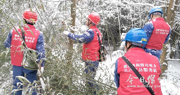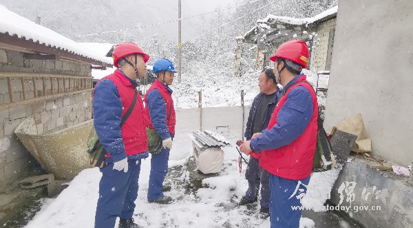 “老陈、老孟、运刚,你们赶紧收拾一下工具,带上测温仪、望远镜、穿上红马甲,咱们去巡视一下汉旺镇天池村的供电线路。”1月7日,气温骤降,绵竹城区和沿山区、山区都飘起了雪花。为确保老百姓正常用电,国网德阳市绵东供电公司清平供电所所长魏建招呼着共产党员服务队队员们一同巡视10千伏天乡路天磷支线路,只为保障大山里7户山民的供电安全。