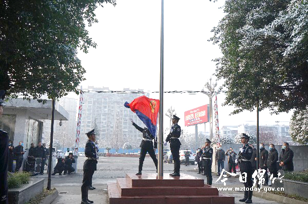 在当天的升警旗仪式上,警旗护卫队迈着整齐的步伐走向旗台,接旗、安旗、展旗,每一个动作铿锵有力,英姿飒爽。伴随着歌声《人民公安向前进》,鲜艳的警旗冉冉升起,全体公安干警向警旗敬礼,充分展示了绵竹公安干警有理想、有本领、有担当的新时代先锋形象。升旗仪式结束后,公安干警们还在警旗下进行了宣誓。 在随后的平安报告会上,市公安局宣布了新聘用警风警纪监督员名单,通报了2020年“旌城扫毒百日攻坚”专项行动、扫黑除恶专项斗争、2020年度公安工作开展情况以及取得的成效。 记者从会上了解到,2020年,市公安局以疫情防控和服务经济社会发展工作为主线,扎实推进“奋进”系列专项行动,深入开展“坚持政治建警全面从严治警”教育整顿,有力维护了社会政治和治安大局稳定。据统计,去年以来,市公安局接受摸排的228条涉黑涉恶线索全部办结,侦办黑社会性质组织犯罪案件2件,抓获犯罪嫌疑人52人;破获涉毒案件48件,抓获97人,破获团伙案件6件,收缴各类毒品44.14公斤,查获吸毒人员650人;破获电诈案件20件,抓获38人;全年立刑案1105件,刑拘245人;受理治安案件1489件;市内无命案发生,成功告破一起沉积16年的命案积案;刑事案件、八类暴力案件和治安案件发案同比分别下降21.3%、30.4%、13.3%,为全市经济社会发展创造安全稳定的政治社会环境。