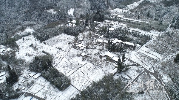1月7日晚上,绵竹普降瑞雪,城乡各地一派北国风光。 这是记者于1月8日在绵竹城乡采用无人机拍摄的绵竹雪景图。