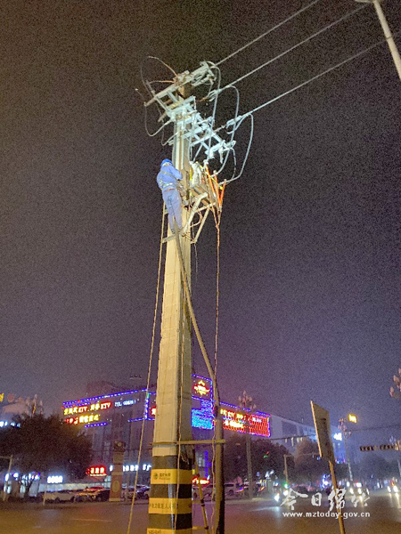 供电员工深夜抢修故障配电设备