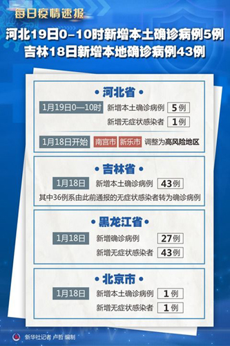 每日疫情速报|河北19日0-10时新增本土确诊病例5例 吉林18日新增本地确诊病例43例