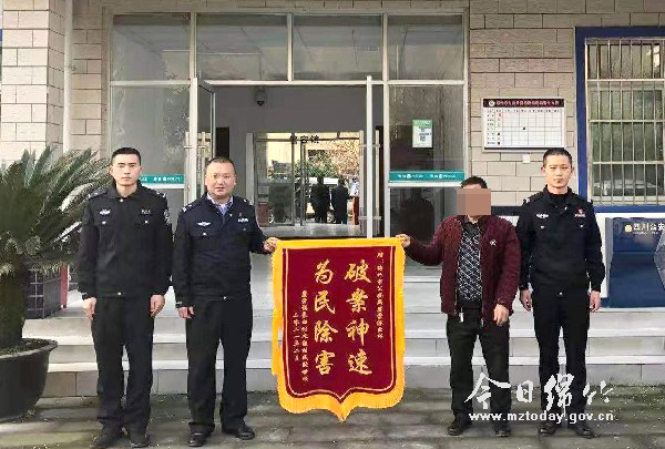 本刊消息 3月3日,麓棠镇长白村9组村民张世顺将一面印有“破案神速 为民除害”的锦旗送到了麓棠派出所,感谢民警破案追赃,为他家挽回经济损失。