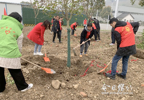 本刊消息 今年3月12日是第43个植树节。当天,绵竹高新区机关和中航宝胜集团公司党员干部职工来到江苏工业园玉妃路旁开展了义务植树活动。