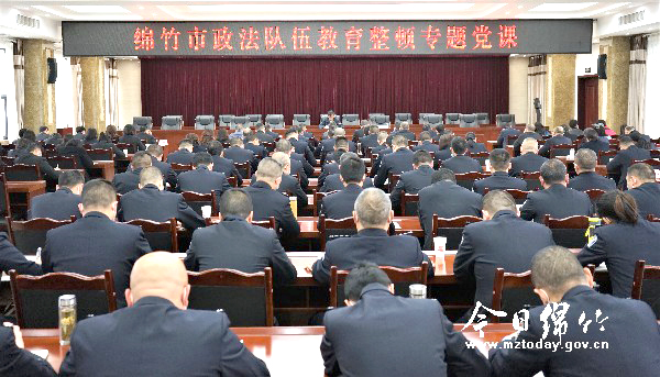 李栋指出,开展政法队伍教育整顿是以习近平同志为核心的党中央从党和国家事业发展全局的高度作出的重大决策部署,是面向全国百万政法干警发出的加强政法队伍建设的动员令。全市政法系统要认真贯彻落实习近平总书记系列重要指示精神,深刻认识开展政法队伍教育整顿的现实紧迫性和极端重要性,把旗帜鲜明讲政治作为第一要求,把对党忠诚作为第一标准,增强“四个意识”、坚定“四个自信”、做到“两个维护”,努力打造一支党和人民信得过、靠得住、能放心的政法铁军,为建设更高水平的平安绵竹、法治绵竹提供坚强保障。 李栋强调,全市政法干警要坚持以思想教育为引领,以学习教育为先导,紧扣忠诚纯洁可靠根本要求,突出政治性、警示性、持续性,坚持强化理论武装,夯实忠诚纯洁可靠的思想基础,锻造忠诚可靠政法铁军;要坚持问题导向、民意导向、目标导向,敢于动真碰硬、触及要害,综合运用自查自纠、组织查处、专项整治等手段,推动查纠整改取得实实在在的效果;要做好评估实际成效、深化问题整改、推进建章立制等重点工作,保障政法队伍既风清气正又充满活力,切实把教育整顿成果转化为提升政法队伍战斗力的不竭动力。 李栋强调,开展政法队伍教育整顿,使命光荣、责任重大、意义深远,全市政法机关和政法干警要坚决落实习近平总书记“五个过硬”总要求,紧盯四项任务、抓牢三个环节,以激浊扬清的定力、刀刃向内的魄力、刮骨疗毒的毅力,下深水、破难题、打硬仗,纵深推动政法队伍教育整顿工作,以政法队伍的新面貌为绵竹建设“高质量产业集聚地、高颜值旅游目的地、高品质生活宜居地”保驾护航,以党和人民满意的新业绩庆祝建党100周年。 市人民法院院长周畅,市人民检察院党组书记、代理检察长徐鹏,市政法队伍教育整顿工作领导成员,全市政法单位班子成员及中层干部现场聆听了党课。