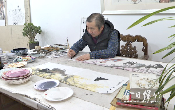 “山气日夕佳,飞鸟相与还。”万物复苏,红彤彤的山花正开得烂漫,几只羊儿悠闲地吃着青草,一个放羊的小孩正在一旁的空地上聚精会神地看着书……这幅名为《读书图》的国画出自绵竹市美术家协会主席孔祥忠之手,以点带面地反映了近几年绵竹对口帮扶凉山州甘洛县人民群众生活发生的变化。