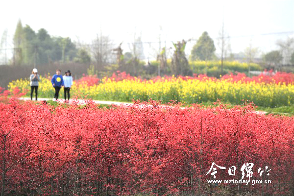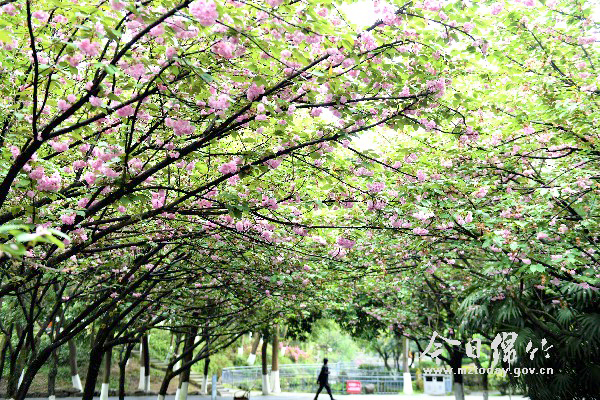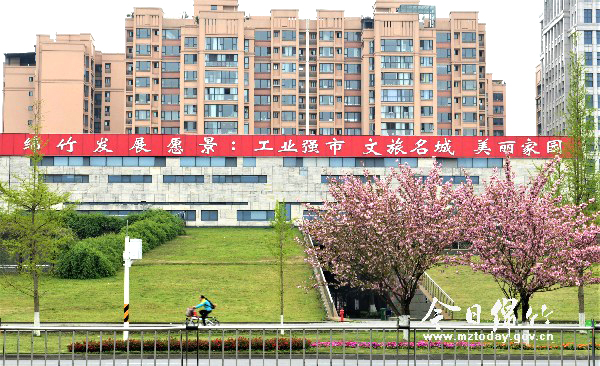 眼下,在绵竹城区的人民公园、苏绵公园、樱花广场、金陵梦想苑广场、苏绵大道等地的樱花盛开,争奇斗艳,成为春日绵竹城的靓丽风景。在“九龙里”,还有一大片红叶,形成一幅春天的美丽画卷。