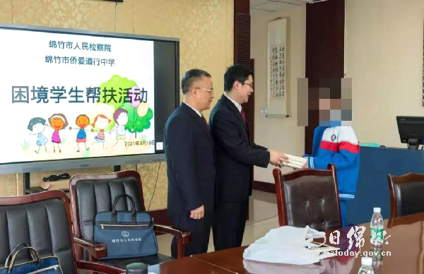 在市福利院,检察官为小杰(化名)、乐乐(化名)送去课外书籍和生活用品,并为乐乐送去了专门制作的相册,小朋友们热情地向检察官倾述自己学习和生活的点滴见闻。在侨爱道行中学,检察官仔细询问小菲(化名)的学习、生活状况。得知小菲性格有点内向、不善言谈后,检察官耐心地和她交流,并鼓励她努力学习,建立自信、乐观的心态。在助养家庭,小轩(化名)拿着检察官送去的课外书籍和乒乓球拍爱不释手。他告诉检察官,自己一直盼望着和妹妹打乒乓球,检察官的礼物来得正是时候。 慰问过程中,检察官还与福利院工作人员、学校教师、助养家庭家长进行座谈,就如何让孤儿感受到家的温暖,防止孤儿自卑、自闭和防止困境少年厌学弃学、自暴自弃等方面问题进行了交流。下一步,绵竹市人民检察院将积极履行检察职能,尽力对符合救助条件的事实孤儿积极开展救助,呼吁全社会投入更多的力量关爱困境少年,共同为他们撑起“爱的保护伞”。
