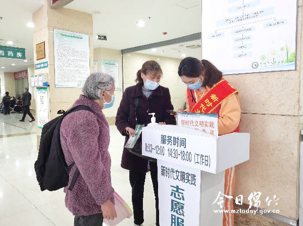 “大爷,你要先去那边交费。”“阿姨,现在医院全面使用电子健康卡,我来帮你申领,你不要着急哈……”走进华西绵竹医院门诊大厅,新时代文明实践志愿服务台几个红色大字十分醒目,服务台的志愿者们正耐心地为前来咨询的群众答疑解惑,尽其所能地提供帮助。而另一边,禁烟宣传员们正在对吸烟人员进行文明劝导,普及防烟控烟知识。除此之外,医院还设立了舒适、温暖的母乳喂养室,各分诊台的便民服务箱里还为患者提供了便捷、温馨的生活用品,为广大患者提供文明、和谐、整洁的就医环境。