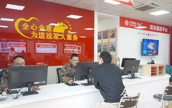 一旁的就业服务区内,青加兵正通过摄像头和大屏幕接受招聘方的“面试”。因病致残,东奔西走四处求职,对他来说有些“吃不消”。升级后的退役军人服务中心规划出就业服务区域,设置有在线就业平台,退役军人坐在屏幕前,就能通过视频与招聘方实现“面对面”对话,对于退役军人来说,求职更加方便了。截至目前,共有15名退役军人通过在线就业平台成功就职。 作为德阳市退役军人服务保障体系“一体化”试点单位,绵竹市退役军人服务中心进行了升级改造,设置前台服务区、休闲阅读区、自动服务区、就业服务区、藏品室、创业成果展览室、心理咨询室、法律咨询室等。采取前台受理、后台办理的方式,来访退役军人通过前台反应诉求和需办理的业务,等待的时间里,便可前往其他区域享受饮茶喝咖啡、读书看报等其他服务,轻松愉悦地等待办理结果。开放式办公通过消除物理隔阂,拉近干群关系的方法,不但让退役军人少走一段路、少费一点心,更进一步提升服务质量,使服务接地气、更贴心。