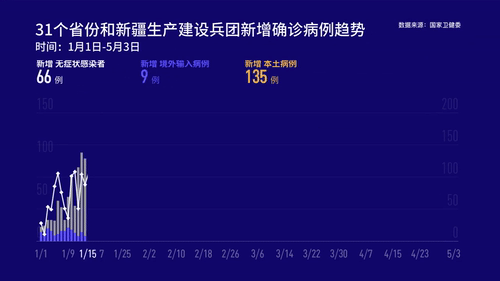 截至5月3日24时新型冠状病毒肺炎疫情最新情况 5月3日0—24时,31个省(自治区、直辖市)和新疆生产建设兵团报告新增确诊病例17例,均为境外输入病例(四川6例,广东4例,上海3例,山东2例,江苏1例,云南1例);无新增死亡病例;无新增疑似病例。 当日新增治愈出院病例15例,解除医学观察的密切接触者122人,重症病例与前一日持平。 境外输入现有确诊病例292例(其中重症病例5例),现有疑似病例6例。累计确诊病例5716例,累计治愈出院病例5424例,无死亡病例。 截至5月3日24时,据31个省(自治区、直辖市)和新疆生产建设兵团报告,现有确诊病例325例(其中重症病例5例),累计治愈出院病例85753例,累计死亡病例4636例,累计报告确诊病例90714例,现有疑似病例6例。累计追踪到密切接触者1009335人,尚在医学观察的密切接触者7006人。 31个省(自治区、直辖市)和新疆生产建设兵团报告新增无症状感染者20例(均为境外输入);当日转为确诊病例5例(均为境外输入);当日解除医学观察13例(均为境外输入);尚在医学观察的无症状感染者328例(境外输入319例)。 累计收到港澳台地区通报确诊病例12980例。其中,香港特别行政区11786例(出院11447例,死亡210例),澳门特别行政区49例(出院49例),台湾地区1145例(出院1058例,死亡12例)。 |