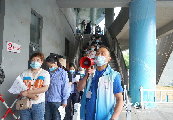 “累!但值得!” “请大家出示健康码,保持1米间距。”5月17日上午10点,前来接种疫苗的市民佩戴口罩,有序在入口处排队等候。紫岩街道工作人员刘贵生手持大喇叭,耐心地向市民宣传接种流程及注意事项。 自全市第九批疫苗接种工作启动以来,接种群众逐渐增多,刘贵生和同事工作时间延长到晚上10点。像这样的叮嘱,他每天要重复上百次。“看到越来越多的市民主动接种,我觉得再累也值得。”刘贵生说,为保障群众有序接种,紫岩街道对当前工作进行了详细的安排部署,将工作细化,责任到人,全面做好此次新冠病毒疫苗接种的宣传、动员、登记、统计。 “婆婆,你进行了登记没有?”上午11点,市体育中心疫苗接种点迎来接种高峰,面对上千名群众排队接种,城东派出所辅警刘贵龙一边在外围维护秩序,一边帮助老人扫码登记。在大家的努力下,市民有序进出,刘贵龙趁机在现场做起了反电诈宣传,帮助群众守好“钱袋子。” 在原市委党校新冠病毒疫苗临时接种点,为避免接种人员排队混乱、等候时间过长,迎祥社区工作人员李福森贴心地摆好板凳,让接种群众有序落座。“工作人员太幸苦了,我们要积极配合他们的工作,早日完成接种。”居民赵崇彪说。