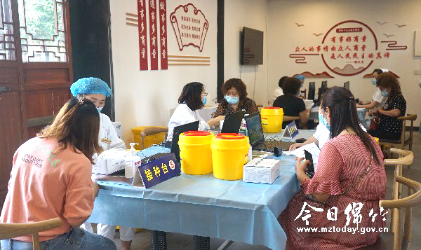 演练现场设置了等候区、接种区、留观区。当演练指令下达后,百余接种人群戴着口罩,在工作人员的指导和帮助下排队扫码,依次沿着全封锁的廊道,一一完成测温、咨询、登记、预检、接种、留观等疫苗接种流程。接种人员在等待30分钟后身体无不适再签字离开,整个流程科学规范。