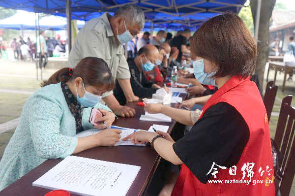为高效有序推进疫苗接种工作,尽快构筑全民免疫屏障,我市陆续在部分镇开放临时疫苗接种点,方便群众就近接种疫苗。 5月21日,在富新镇同心广场临时疫苗接种点,排队区、留观区搭建了50余顶帐篷为群众遮阳挡雨,营造出舒适的接种环境。闻讯赶来的群众有序排队,在工作人员和志愿者的引导帮助下,整个接种现场井然有序。“这是实实在在为老百姓办实事,不用坐车去市区,赶集的时候或者干完农活后就能来接种,还能学习健康知识,很方便很暖心。”村民肖顺友接过工作人员分发的蛋糕、矿泉水不停地夸赞。