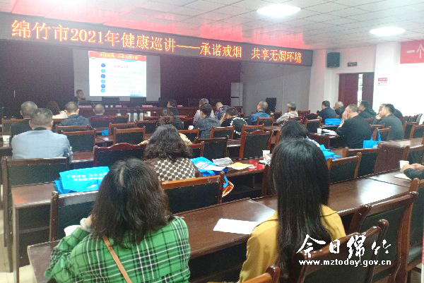 5月25日,在世界无烟日到来之际,绵竹市2021年健康巡讲——承诺戒烟 共享无烟环境健康知识讲座在市水利局举行。市疾控中心、爱卫办、市人民医院医生为水利干部职工进行了一堂精彩的讲座。