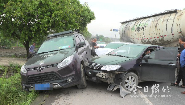 右侧违章超车 引发4车相撞交通事故