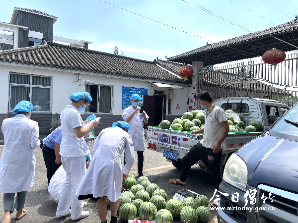 “卖瓜咯卖瓜咯!又甜又脆的本地西瓜!”6月4日上午,一辆满载大西瓜的小货车开进市第三人民医院,“白衣天使”们偷闲客串小贩,吆喝、挑瓜、称重、收款……烈日下,大家满头大汗却热情不减,短短1个多小时,1500斤西瓜销售一空。