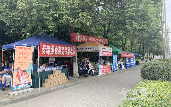 矿泉水、口罩、座椅、清凉油……6月7日,在绵竹中学考点外,一个个高考服务站特别醒目,服务站里的志愿者成为考场外的一道靓丽风景线。