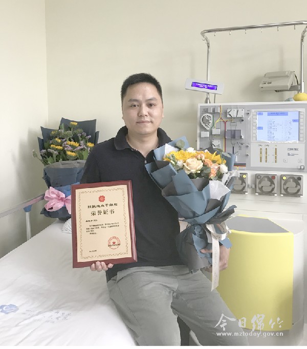 “采集过程非常顺利,紧张了这么久,突然放松下来,心里唯一的想法就是希望他尽早康复。”15日晚,吴建平完成捐献回到绵竹,如释重负的他告诉记者,对于患者来说,每一分每一秒都是生命,都须争取。“人命大于天。”这是在工作最为忙碌时向单位递交请假条时得到的答复,这5个字也是他捐献的初衷。为了尽快顺利完成采集,无辣不欢的他暂时戒掉了辛辣和油腻,清淡饮食,严格作息,在妻子的陪伴、鼓励和监督下,以最好的身体状态走进了采集室。 3个多小时平躺,四肢发僵,却因担心影响采集,连稍微蹬蹬腿、舒展舒展手臂的动作都不敢有。贴心的妻子在一旁按摩、安抚,同事也在当天清早赶来陪伴,让他紧张的心情得以缓解。当医生拔掉针头,告诉他顺利采集到足量造血干细胞混悬液,抱着鲜花和荣誉证书,那一刻,他欣喜不已,在帮助他人的过程中更懂得生命的珍贵,更明白生命的意义。