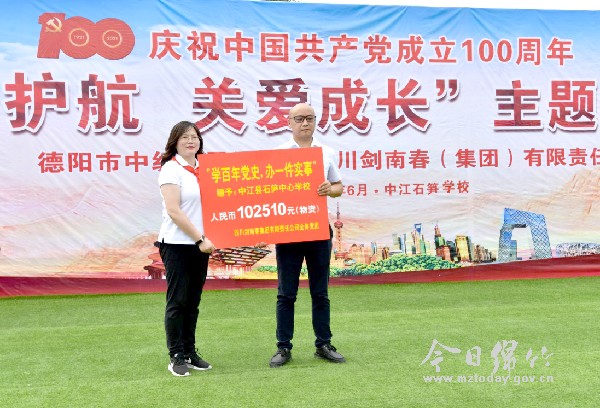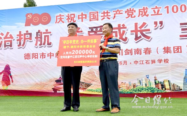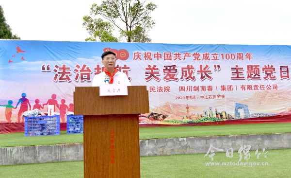 为庆祝建党100周年,落实“学百年党史,办一件实事”精神。6月23日,四川剑南春集团公司与德阳市中级人民法院在中江县石笋中心学校联合举办了“法治护航·关爱成长”主题党日活动。集团公司党委副书记、副总经理蔡发富代表集团公司向德阳市教育基金会定向捐赠人民币20万元,用于改善石笋中心学校教学设施。集团公司党委委员、工会主席王剑代表公司党员,向石笋中心学校捐赠了由公司全体党员个人捐款购买的价值10万余元的校服、书包、乒乓球台等体育及学习用品。集团公司党委委员、纪委书记赵君和24名党支部书记,以及12名公司优秀党员代表参加了主题党日活动。