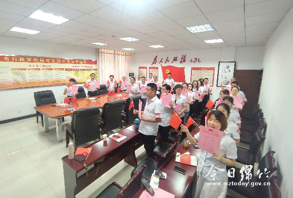 “今天是党的百年华诞,我们开展这个活动,主要是表达对党的无限热爱之情,同时也激励我们党员,在今后的工作中,更好地为群众服好务。”行政审批局工作人员魏天华告诉记者。