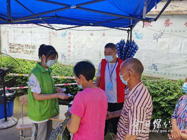 “接种的时候请佩戴好口罩,注意加强个人防护。”7月2日早上7点过,已有不少群众在排队等待接种疫苗。什地镇组织新时代文明实践志愿者们一边查看群众健康码,引导接种群众有序排队,做好现场秩序维护,一边协助医护人员核对接种者的身份信息等,做好“宣传员”“疏导员”“引导员”和“讲解员”。