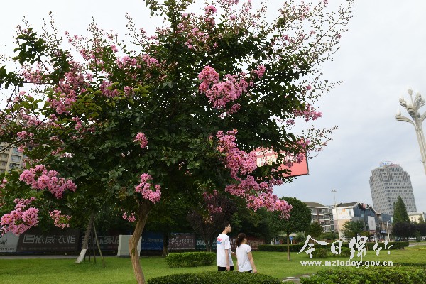 进入7月下旬以来,绵竹城区多处紫薇树开满了紫红色的花朵,让人赏心悦目。 这是记者于7月27日在回澜大道延伸段两旁绿化带拍摄的紫薇树开花的场景。 |