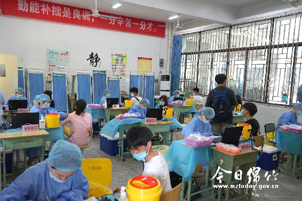 南轩中学学生处主任钟昭廷介绍,该校高度重视此次在校学生集中接种工作,合理设置接种区域,安排学生按班分批接种。同时,100余名老师加入到志愿者的行列中,引导和组织学生有序接种。 记者从市疾控中心获悉,除南轩中学设置临时接种点外,我市还将陆续在绵竹中学、绵竹职中设置新冠病毒疫苗临时接种点。预计8月底前全面完成全市5800名15至17周岁学生疫苗接种工作。