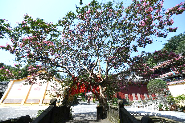初秋时节,位于麓棠镇三溪寺内的这株树龄440余年的连体紫薇繁花似锦,惹人喜爱,吸引众多游人驻足观赏。