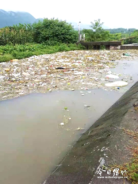 红岩渠在我市境内总长约33公里,因设计比降较缓,常年淤积严重。在麓棠镇与九龙镇交界处,红岩渠内采用倒虹管的形式下穿射水河,由于重力作用,在此处极易堆积生活垃圾及白色漂浮物等,严重时“垃圾河”长达几十米,严重影响了当地水域环境。当地镇政府组织人员平均一月打捞两至三次,仍然收效甚微。
