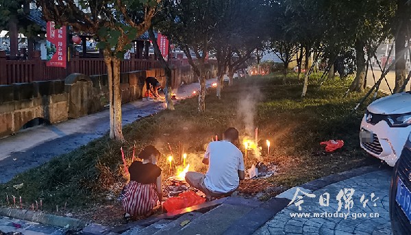 像这样的不文明祭祀行为在马尾河沿岸及部分小街小巷里同样存在。市民在中元节为表达自己对故去亲人的追思进行祭祀本无可厚非,但选择在公共场所和园林绿化带等地进行焚烧纸钱,不仅破坏了市容市貌,还容易引起火灾。市综合行政执法局再次倡导,“绿色祭祀,环保优先。安全祭祀,防范火灾。节俭祭祀,传承美德。希望文明祭祀成为一种习惯,变成一种风尚。”