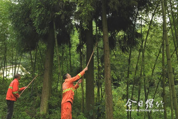 图为8月31日,绵竹市国有林场清水河工区工人在护林。