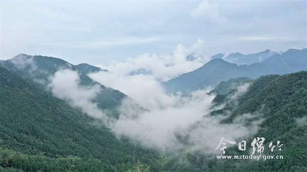 图为8月31日,记者在绵竹市国有林场清水河工区拍摄的云雾与森林相映成趣的场景。