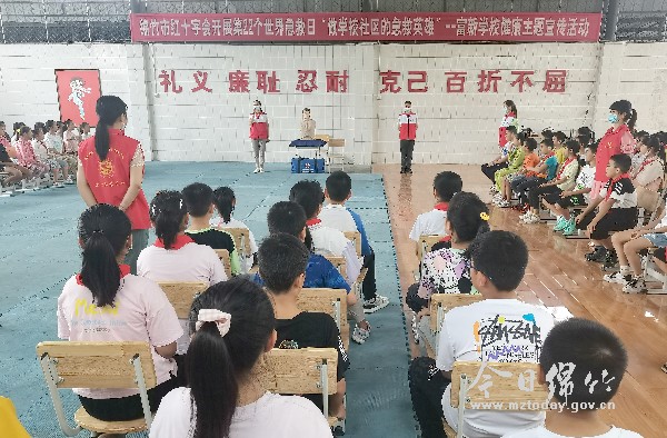 “同学们,地震发生时,应该怎么保护自己?”“我们再来一起温习一次七步洗手法。”9月8日下午,绵竹市红十字会“救在身边”关爱儿童应急救护普及培训暨第22个世界急救日“做学校社区的急救英雄”主题活动走进富新学校,为该校120余名师生带去了应急救护知识和技能,为学生生命安全保驾护航。