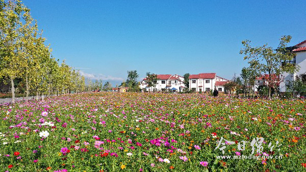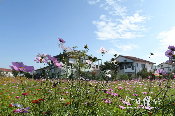 在孝德镇年俗村,与农房相邻的这20多亩花圃中,盛开着格桑花、硫华菊 、醉蝶花、金盏菊等10多个品种的鲜花。目前这些花开得正艳,为深秋的乡村增添了勃勃生机。这是10月29日,记者在年俗村拍摄的鲜花盛开的场景。