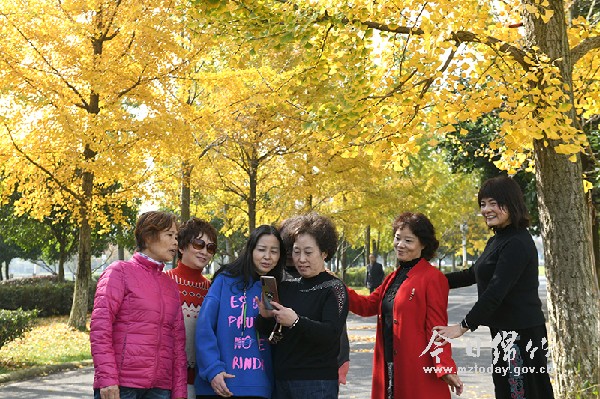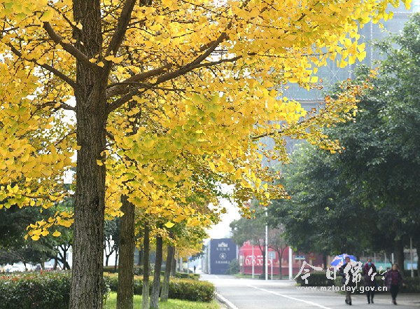 11月9日,市民在市区回澜大道延伸段和苏绵大道的银杏树下观赏拍照。初冬时节,绵竹城区各地的银杏树叶一片金黄,在阳光的照耀下格外漂亮,成为一道靓丽的风景。 |