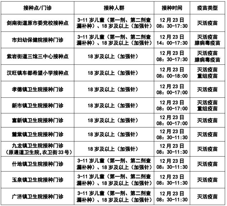 【通知】12月23日绵竹新冠病毒疫苗接种通知