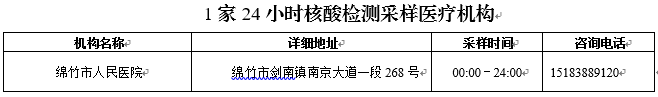 【疫情防控】我市18个核酸采样点免费服务省外来(返)绵人员