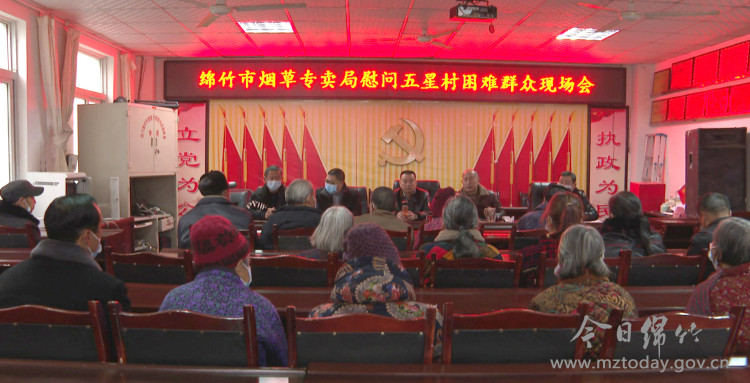 1月25日,绵竹市烟草专卖局干部职工对对口帮扶的剑南街道板桥集镇五星村部分群众进行慰问,并送去了慰问金和新春祝福。