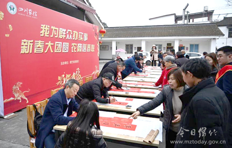 1月25日,绵竹农村商业银行在孝德镇年画村村委会广场举行了“我为群众办实事 新春大团圆 农商送春联”活动。活动邀请了国家级、省级、市级书法家协会会员及该行部分书法爱好者到现场为群众义务写春联送春联,为群众送去新春祝福。